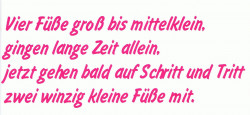 +danke für die guten Tipps, den Spaß und die "mitgebuchte" leichte Entbindung beim Geburtsvorbereitungskurs.+danke für nach Hause kommen, Wiegen, Wissen auffrischen und Geschwisterchen mit einbeziehen bei der Nachsorge.