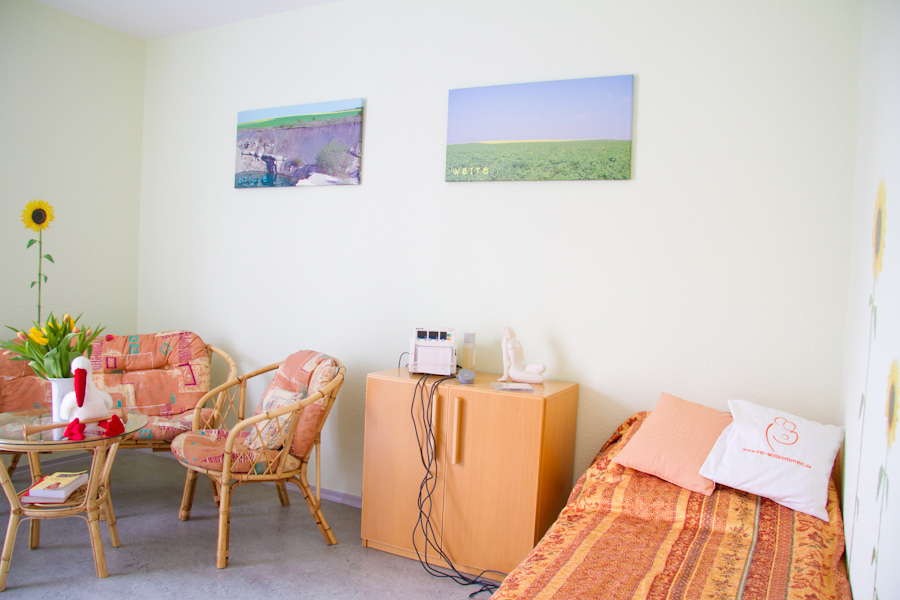 Dieser Raum wird u.a. für Gespräche, Vorsorgen, Fußreflexzonenmassagen und Akupunktur genutzt.